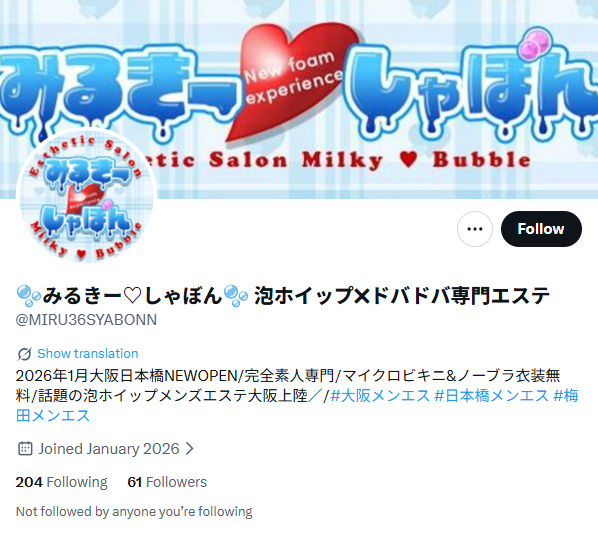 ~ 大阪『みるきー♡しゃぼん』メンズエステ ~